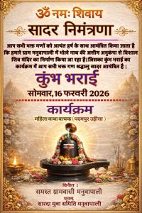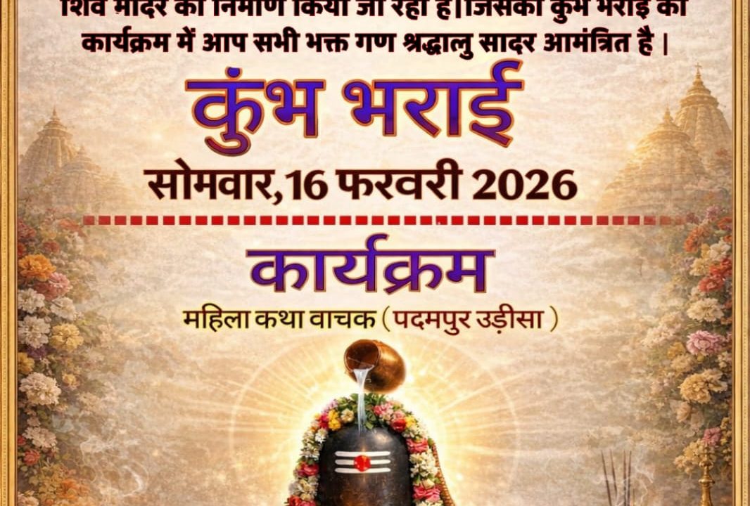 मनुवापाली में विशाल शिव मंदिर निर्माण, कुंभ भराई कार्यक्रम 16 फरवरी को रायगढ़। ॐ नमः शिवाय। ग्राम मनुवापाली में भोलेनाथ...