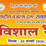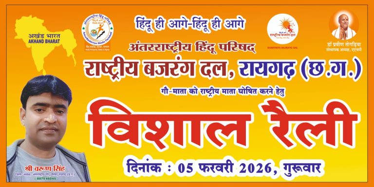 रायगढ़ में अंतर्राष्ट्रीय हिंदू परिषद–राष्ट्रीय बजरंग दल की विशाल रैली, गौ माता को राष्ट्र माता घोषित करने की मांग रायगढ़...