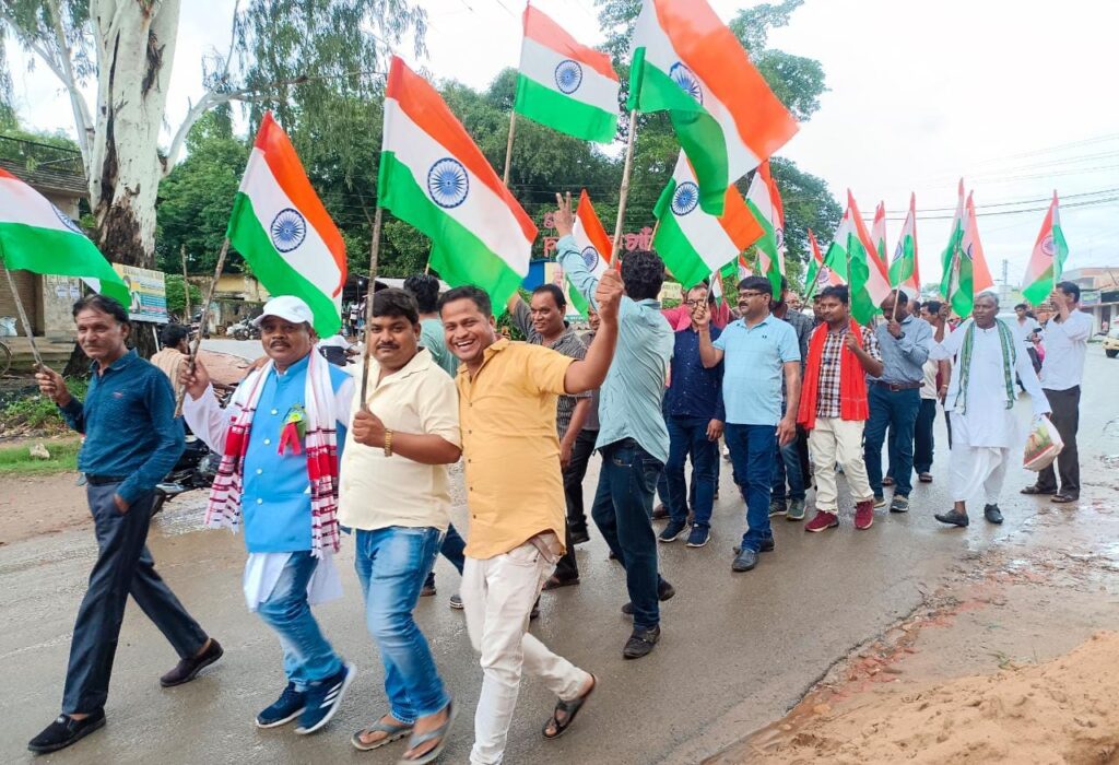 इस दौरान कार्यकर्ताओं ने धर्मशाला से पैदल यात्रा में निकालकर हाथो में तिरंगा लिए शहर के तीनों मुख्य मार्गों में नारे लगाते हुए भ्रमण किया। एवम लोगों से अपने घरों के सामने तिरंगा झंडा लगाने की अपील की।
