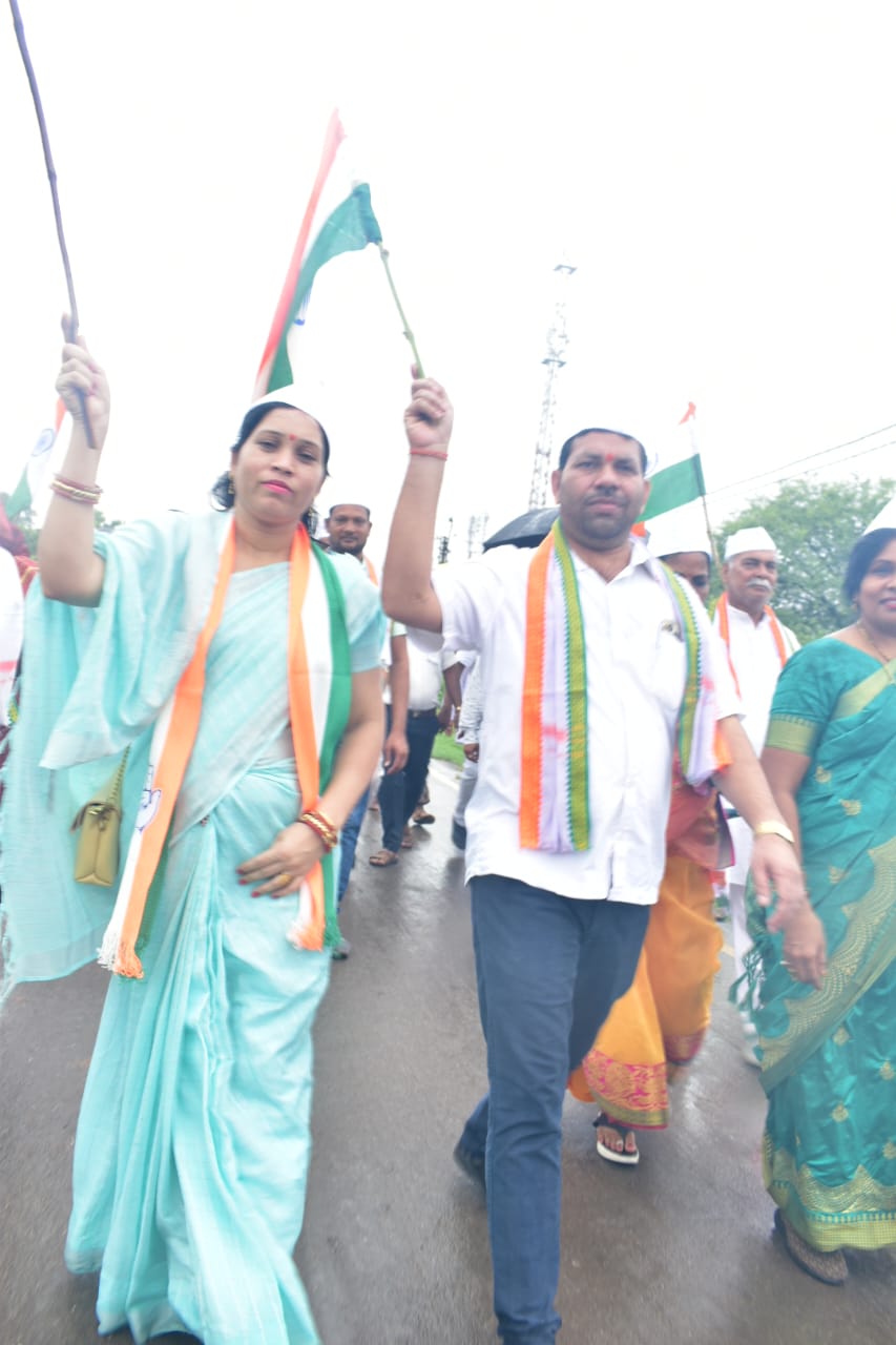 तत्पश्चात पदयात्रा कोसीर गांव का हृदय स्थल अंबेडकर चौक पहुंची जहां विधायक उत्तरी जांगड़े जनपद अध्यक्ष मंजू मालाकार, सोनी अजय बंजारे नगर पालिका अध्यक्ष एवं कांग्रेस नेत्रियों ने डॉक्टर भीमराव अंबेडकर बाबा साहेब के आदमकद प्रतिमा में माल्यार्पण किया तथा कांग्रेस के जिला महामंत्री गोल्डी नायक प्रभारी सारंगढ़ नगर कांग्रेस ने शायराना अंदाज में उद्बोधन देते हुए मोदी सरकार की जमकर लताड़ लगाई उन्होंने प्रदेश में कांग्रेस की भूपेश सरकार के महत्वकांक्षी योजनाओं गोधन न्याय योजना, किसान मजदूर योजना, युवा मितान क्लब, महिला सशक्तिकरण, नरवा गरवा घुरवा बाड़ी जैसे कई योजनाओं पर प्रकाश डाला साथ ही उन्होंने 9 अगस्त को क्रांति दिवस, अंग्रेजों भारत छोड़ो आंदोलन व काकोरी षड्यंत्र के साथ कहा आज का दिन मोहर्रम के साथ युवा कांग्रेस की स्थापना दिवस आदिवासी दिवस जैसा बड़ा दिन है कहा, केंद्र में भाजपा मोदी सरकार बेरोजगारों के साथ छलावा कर रही है महंगाई इतनी बढ़ गई है कि अब तो खाने पीने के चीजों पर भी टैक्स वसूले जा रहे हैं यहां तक की सड़कों में चलने से लेकर खाना खाने नहाने हर चीजों पर मोदी सरकार टैक्स ले रही है, उन्होंने जनता से अपील की कि अब समय आ गया है हम सब मिलकर बेरोजगारी भुखमरी और बढ़ती महंगाई रूपी मोदी सरकार को उखाड़ फेंके। तत्पश्चात तत्पश्चात सारंगढ़ की लोकप्रिय विधायक श्रीमती उत्तरी गणपत जांगड़े ने सभी कांग्रेसी जन का अभिवादन करते हुए कहा किया पदयात्रा आम जनता से जुड़ने और सभी को साथ लेकर आगे बढ़ने के संदेश देने के लिए निकाली जा रही है कॉन्ग्रेस जो कहती है वह करती है भूपेश बघेल जी ने अपने वायदे पूरे किए हैं सरकार गांव गली सड़क में विकास कार्य करा रही है जनता और किसान बेहद खुश हैं मगर केंद्र की मोदी सरकार जिस तरह से दिन प्रतिदिन महंगाई बढ़ा रही है उससे जनता और खासकर हम महिलाएं सबसे ज्यादा दुखी हैं जब जब केंद्र में भाजपा की सरकार आई है बेरोजगारी भुखमरी महंगाई बढ़ी है ऐसे सरकार को हमें बदलना होगा। पदयात्रा चना मुड़ा पहुंची जहां कांग्रेसी नेता शिव टंडन सरपंच ग्राम वासियों और कांग्रेसी कार्यकर्ताओं ने गर्मजोशी से पद यात्रा का स्वागत किया तत्पश्चात पदयात्रा ग्राम राम भाटा और ग्राम लेन्ध्रा पहुंची जहां ग्रामीणों और कांग्रेस के जोन सेक्टर प्रभारियों ने पदयात्रा का स्वागत किया तत्पश्चात पदयात्रा अपने अंतिम पड़ाव ग्राम खम्हारडीह पहुंची जहां मंडी के उपाध्यक्ष दारा सिंह जांगड़े कांग्रेस के कार्यकर्ताओं ग्रामीणों ने पदयात्रा का स्वागत किया। मंच को वरिष्ठ कांग्रेसी सूरज तिवारी, जनपद पंचायत के उपाध्यक्ष गनपत जांगड़े, विनोद भारद्वाज अनुसूचित जाति अध्यक्ष महेंद्र गुप्ता युवा कां
