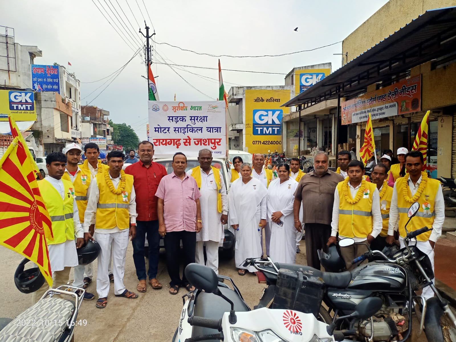 लैलूंगा – आजादी के अमृत महोत्सव से स्वर्णिम भारत की ओर के तहत ब्रह्माकुमारीज़ के यातायात एवम परिवहन प्रभाग द्वारा आयोजित सड़क सुरक्षा मोटर सायकल यात्रा रायगढ़ से तमनार नगर में पहुंचते ही तमनार सेवाकेंद्र संचालिका बी. के. कस्तुरी बहन तथा उनके टीम ने यात्रा मेनेजर ब्रह्माकुमारी चित्र बहन तथा उनके यात्री टीम को गुलदस्ते से स्वागत किया गया तत्पश्चात यात्रियों का टीम द्वारा नगर में यातायात नियमों को पालन करने व सुरक्षित जीवन यात्रा तथा मेडिटेशन से तनाव मुक्त जीवन जीने का संदेश देते यात्रियों का काफिला दो समूह में बटकर शासकीय हाई स्कूल तमनार तथा सरस्वती शिशु मंदिर में विद्यार्थियों को बी. के. कंचन बहन सारंगढ, बी . के. भगवती बहन रायगढ़ तथा बी. के . इंद्रा बहन सारंगढ ,