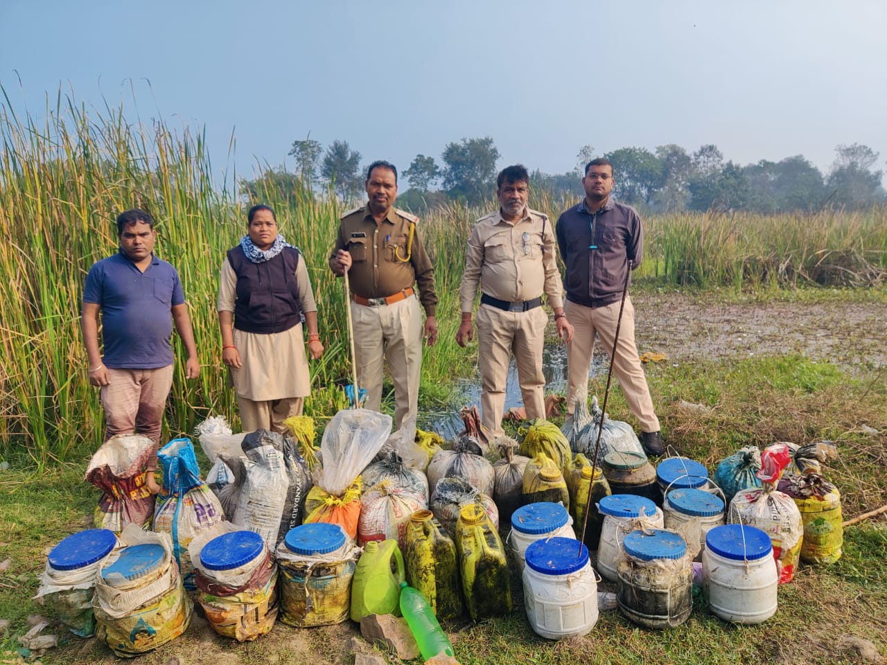 2070 किलो ग्राम महुआ लाहन पकड़ाया, शराब बनाने के उपकरण को भी किया गया नष्ट