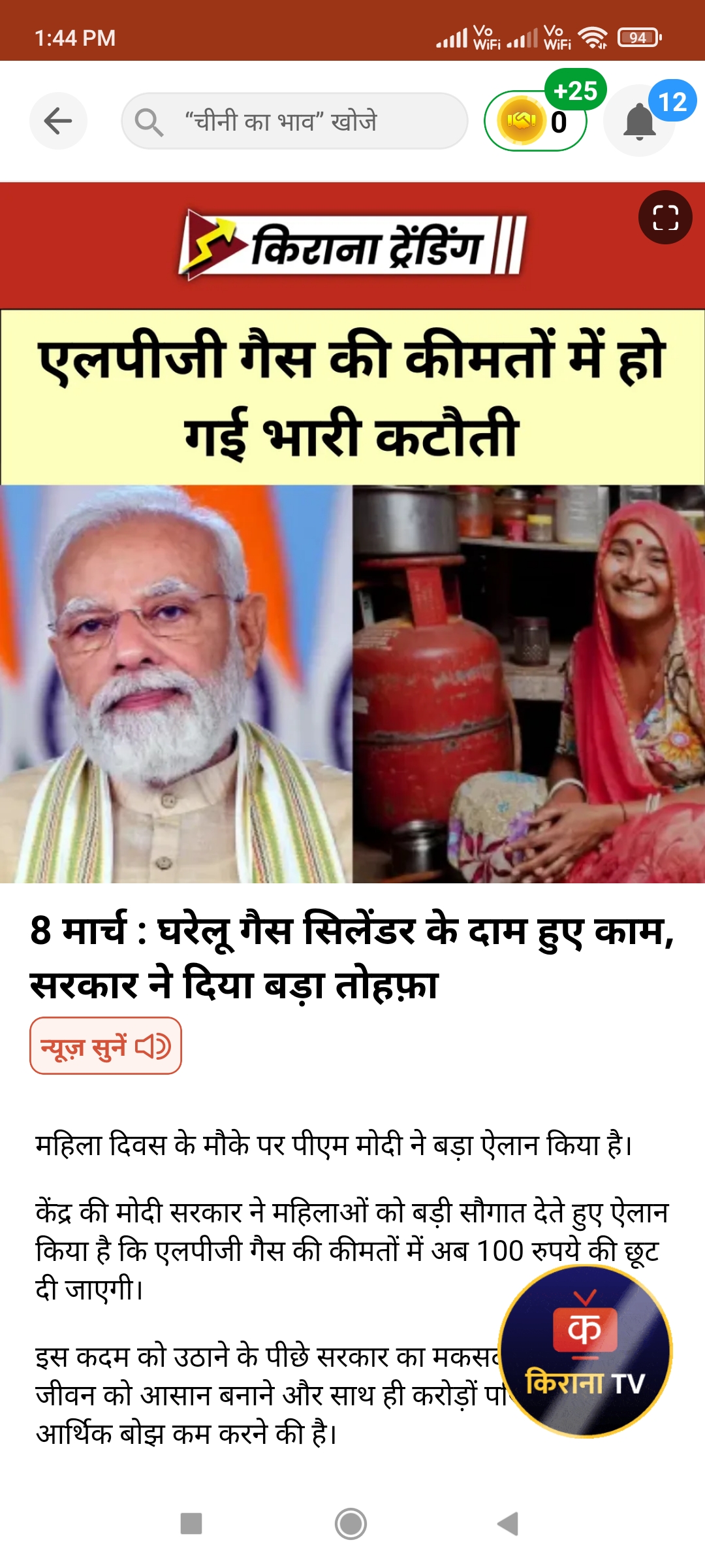 - उन्होंने ट्वीट करते हुए जानकारी दी है कि महिला दिवस के अवसर पर आज हमने एलपीजी सिलेंडर की कीमतों में 100 रुपये की छूट का बड़ा फैसला किया है।