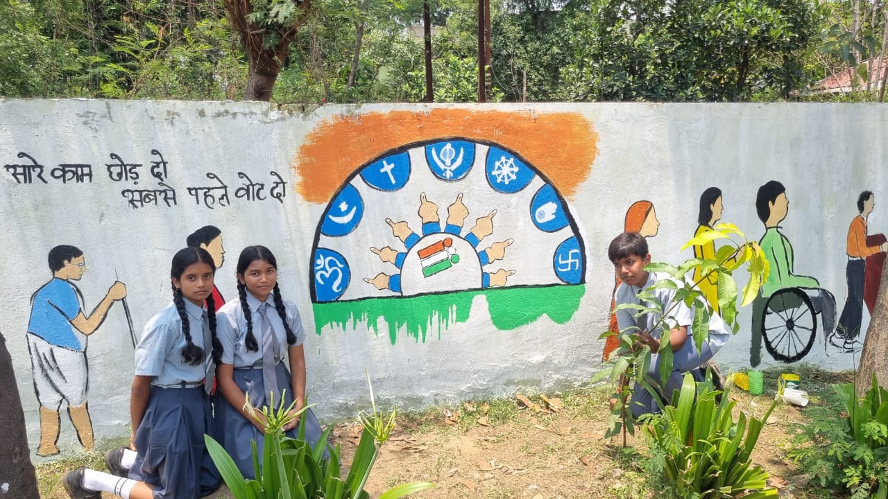 वॉल पेंटिंग से दिया गया शत प्रतिशत मतदान का नारा