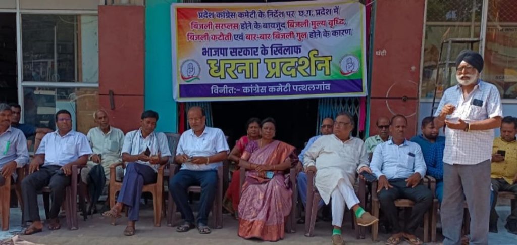बिजली के दाम पर 8% की बढ़ोतरी किए जाने एवं बार बार बिजली कटौती के खिलाफ पत्थलगांव के कांग्रेसियों ने किया धरना प्रदर्शन
