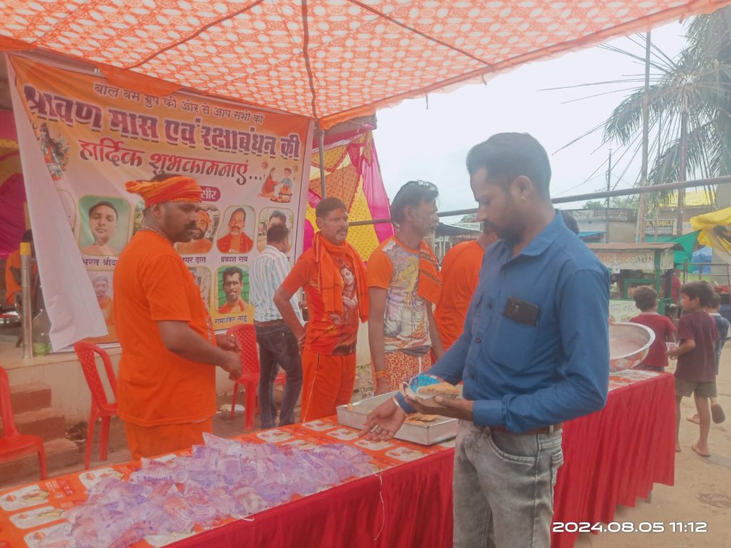 भगवान भोलेनाथ के भक्तों ने राहगीरों को खीर पुड़ी वितरण किया