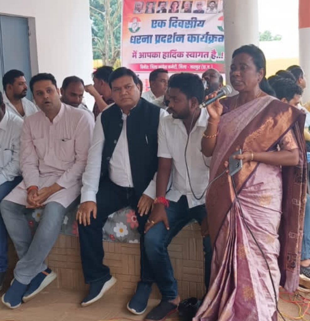 विधायक देवेंद्र यादव की गिरफ्तारी के विरोध मे कांग्रेसियों ने जशपुर में किया धरना प्रदर्शन