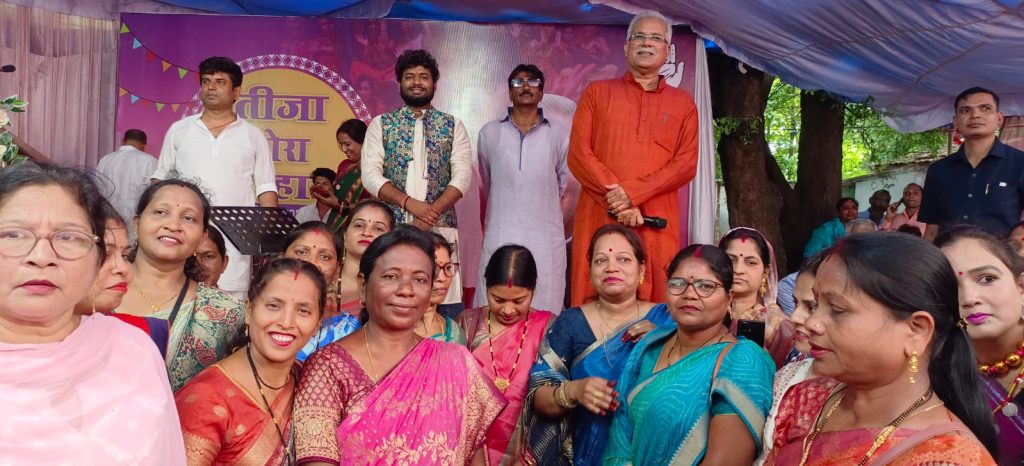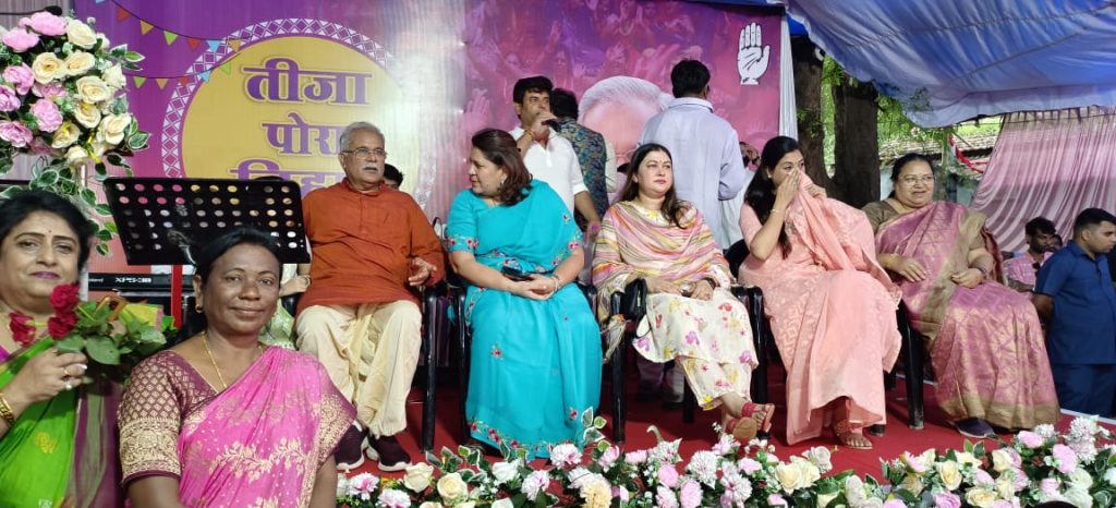 पूर्व मुख्यमंत्री भूपेश बघेल के निवास में तिजा पोरा तिहार धूमधाम से मनाया .. . पत्थलगांव छत्तीसगढ़ का पारंपरिक तिजा पोरा त्योहार को पूर्व मुख्यमंत्री भूपेश बघेल के निवास पर धूमधाम से मनाया गया प्रदेश भर से विभिन्न स्थानों से महिलाएं शामिल हुई . इस अवसर पर श्री बघेल जी ने प्रदेशवासियों को शुभकामनाएं दी और कहा की पोरा तीजा त्योहार छत्तीसगढ़ अंचल की पारंपरिक त्यौहार है इसमें बैल सजाया जाता है बैल दौड़ कराया जाता है छोटे-छोटे बच्चे मिट्टी के नदियां बनाकर खेलते हैं लड़कियां चुकिया बनाकर खेलती हैं त्योहार को हमने हर साल बड़े धूमधाम से मनाया है तिजा त्योहार के छुट्टी की शुरुआत भी हमने की थी । । इस अवसर पर राष्ट्रीय महिला कांग्रेस अध्यक्ष श्रीमती अलका लांबा राष्ट्रीय महिला कांग्रेस प्रवक्ता सुप्रिया सेन सांसद राष्ट्रीय प्रवक्ता रागिनी नायक प्रदेश महिला कांग्रेस अध्यक्ष फूलों देवी नेताम प्रदेश अध्यक्ष दीपक बैज कांग्रेस के विधायक सांसद ज्योत्साना महंत प्रदेश कांग्रेस सचिव सुश्री रत्ना पैकरा सह जिला पंचायत सदस्य पत्थलगांव एवं भारी संख्या में महिलाएं बच्चे शामिल रहे ।