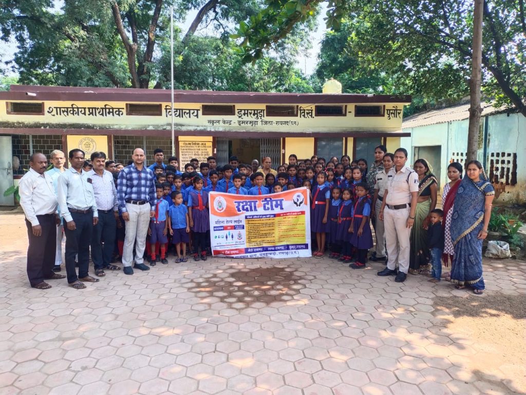 *04 सिंतबर, रायगढ़* । एसपी श्री दिव्यांग कुमार पटेल के दिशा-निर्देशन पर महिला और बालकों को विविध अपराधों के प्रति जागरूक करने के लिए जिले में विशेष अभियान चलाया जा रहा है। इसी कड़ी में आज 04 सितंबर 2024 को महिला सेल प्रभारी सहायक उप निरीक्षक मंजू मिश्रा द्वारा डीएसपी अनामिका जैन के मार्गदर्शन में थाना पुसौर अंतर्गत शासकीय प्राथमिक शाला डूमरमुडा में जागरूकता कार्यक्रम आयोजित किया गया।