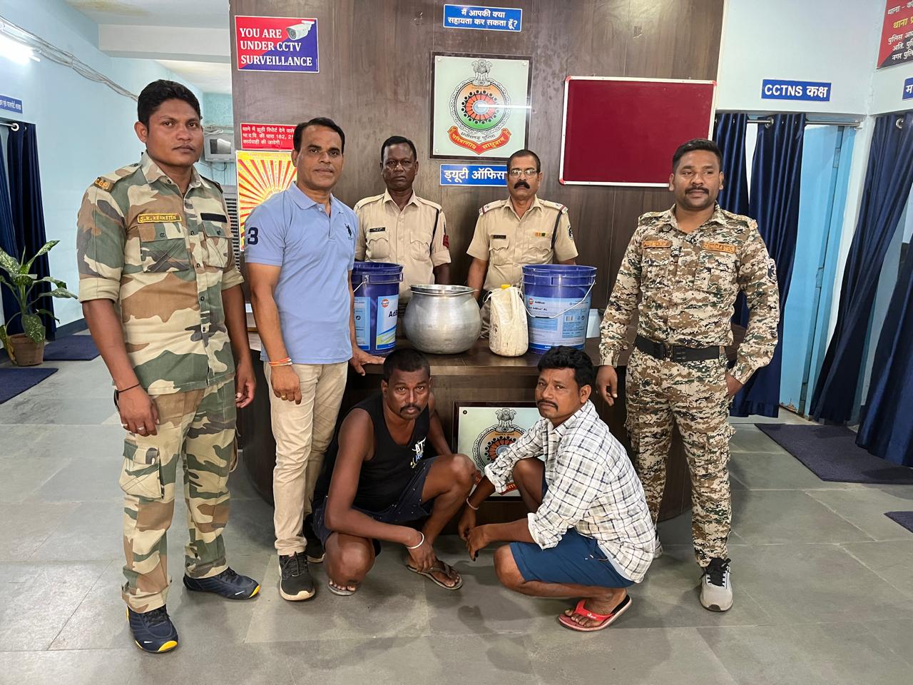 अवैध शराब के विशेष अभियान में कोतरारोड़ पुलिस की बड़ी कार्रवाई: अवैध महुआ शराब निर्माण पर छापा, 35 लीटर शराब बरामद, महुआ पास का नष्टीकरण, दो आरोपी गिरफ्तार
