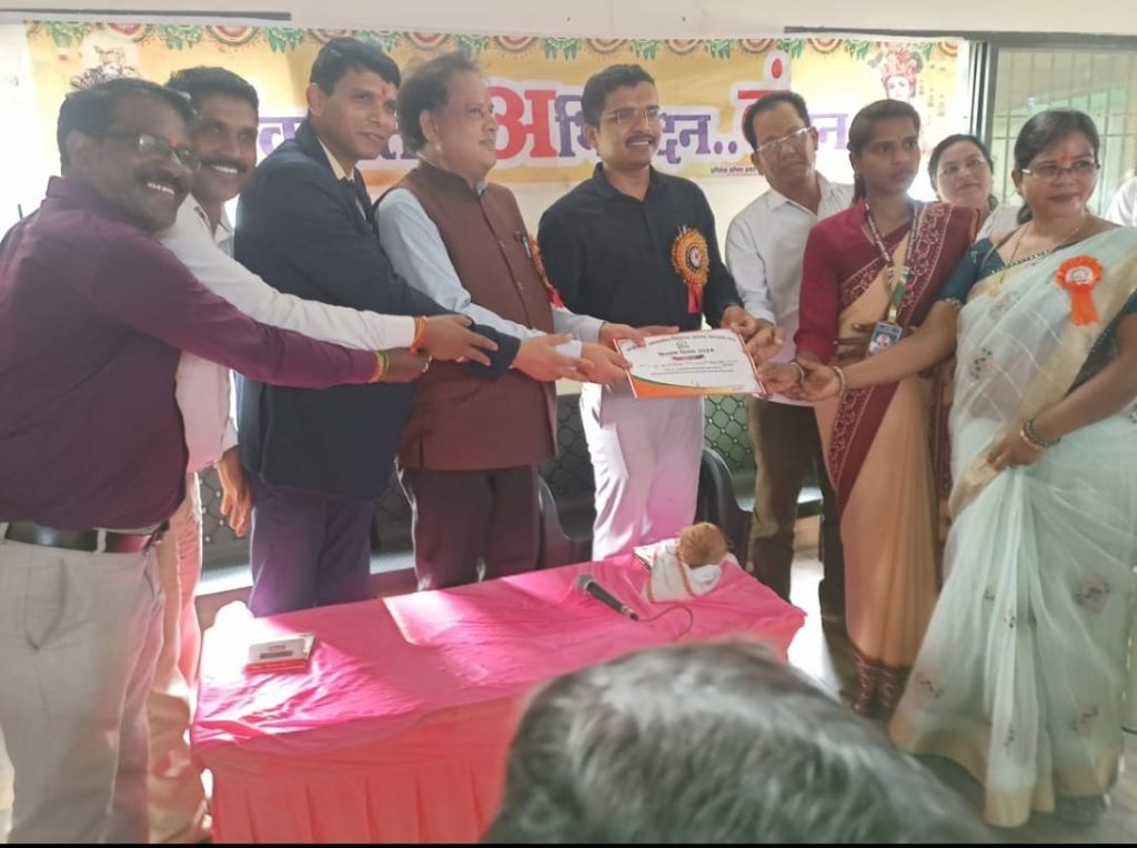अशासकीय विद्यालय प्रबंधक कल्याण संघ के द्वारा स्वाद महल में शिक्षकों हुआ सम्मान