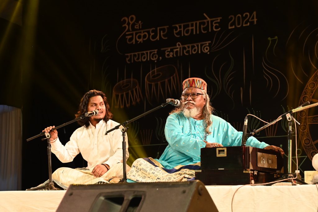 39वें चक्रधर समारोह में सातवें दिन पद्मश्री भारती बंधु की सूफियाना गायन ने उपस्थित दर्शकों को देर रात तक दर्शकों को झूमने के लिए मजबूर किया। कबीर के दोहे को अपने अंदाज में प्रस्तुत कर भारती बंधु और उनकी टीम ने खूब तालियां बटोरी। दर्शकों ने उनकी प्रस्तुति की खूब सराहना की। उन्होंने जरा धीरे-धीरे गाड़ी हाँको…मेरे राम गाड़ी वाले…, मो से नैना मिलाइके…,दमादम मस्त कलन्दर…जैसे गीतों से श्रोताओं को आनंदित किया।