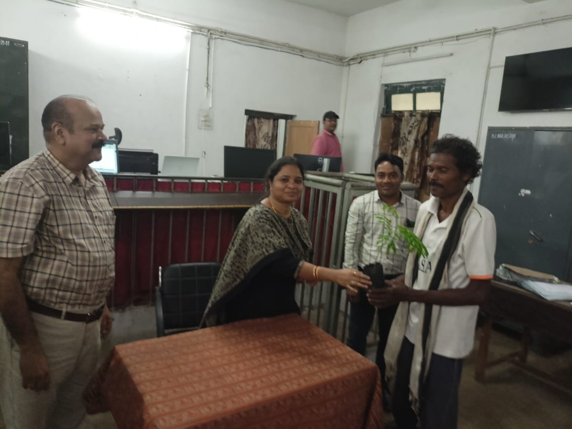 घरघोड़ा न्यायालय परिसर में आयोजित लोक अदालत में न्यायिक दंडाधिकारी प्रथम श्रेणी मजिस्ट्रेट श्रीमती चंद्रकला साहू द्वारा प्रार्थी को प्रकरण में राजीनामा किए जाने पर एक पौधा भेंट कर किया सम्मानित