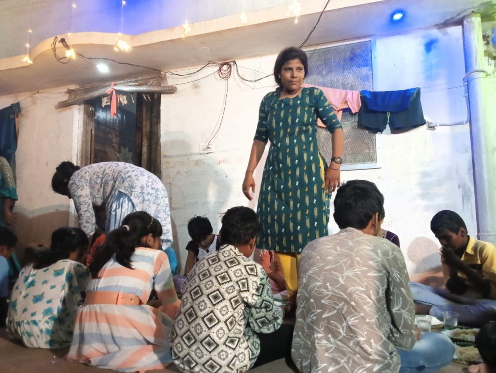 महिला दुर्गोत्सव समिति, कसेरपारा ने नवरात्रि पर नेत्रहीन बच्चों को कराया भोजन