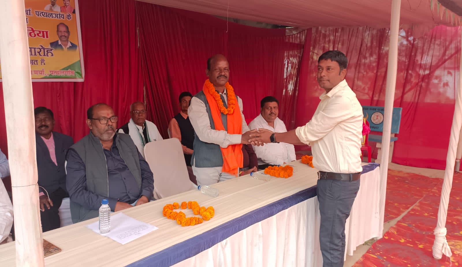 पत्थलगांव । प्रदेश में भाजपा की सरकार बनने के पश्चात समस्त आदिम जाति सेवा सहकारी समिति मर्या में विधायक की अनुशंसा से अध्यक्षों को नियुक्त किया गया है। इसी कड़ी में आदिम जाति सेवा सहकारी समिति मर्या. पत्थलगांव में विधायक श्रीमति गोमती साय के अनुशंसा पर भाजपा मंडल महामंत्री एवं पूर्व सरपंच रूप सिंह राठिया को नामित किया गया। इस मौके पर रविवार को पदभार ग्रहण समारोह आयोजित किया गया। उक्त कार्यक्रम की शुरुआत मंचासिन अतिथियों द्वारा मां सरस्वती के छाया पर दीप प्रज्वलित कर किया गया। जिसके पश्चात अतिथियों का समिति के प्रभारी प्रबंधक समेत कर्मचारियों ने पुष्पहार से स्वागत किया। इस दौरान कार्यक्रम के मुख्यअतिथि भाजपा जिला उपाध्यक्ष सुनील अग्रवाल ने सहकारी समिति के अध्यक्ष के रूप सिंह राठिया को विधिवत शपथ दिलाई। उक्त कार्यक्रम में मंच का संचालन समिति के पूर्व उपाध्यक्ष एवं किसान नेता विजय त्रिपाठी द्वारा किया गया। कार्यक्रम के पश्चात समस्त किसानों के लिए भोजन एवं जलपान की उचित व्यवस्था की गई।