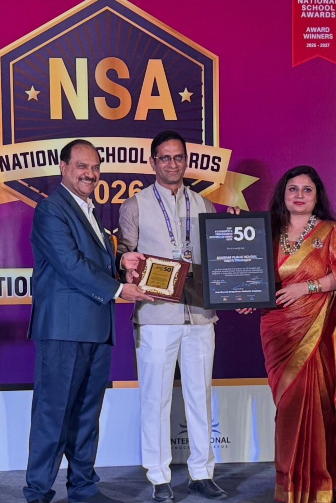 शहर की प्रतिष्ठित शैक्षणिक संस्था संस्कार पब्लिक स्कूल को देश के उभरते हुए स्कूल का अवार्ड दिया गया है ,संस्था की प्राचार्या श्रीमती रश्मि शर्मा ने बताया कि शिक्षा क्षेत्र की प्रसिद्ध संस्था एडु मिरर और नेशनल स्कूल अवार्ड संस्था द्वारा देश भर के श्रेष्ठ स्कूलों में से 50 उभरते हुए स्कूल का ख़िताब दिया गया ,जिसमें छत्तीसगढ़ से संस्कार पब्लिक स्कूल ने बाजी मारी ,प्राचार्या ने बताया कि मार्गदर्शक रामचंद्र शर्मा के मार्गदर्शन और विज़न के आधार पर संस्कार स्कूल सभी क्षेत्रो में शानदार प्रदर्शन कर रही है ,स्कूल के द्वारा किये गए बेहतरीन कार्य और भविष्य को देखते हुए देश के पचास उभरते हुए स्कूल का अवार्ड बेंगलुरु में रामचंद्र शर्मा द्वारा लिया गया , इस अवसर पर रामचंद्र शर्मा ने कहा कि हमारा उद्देश्य बच्चों का भविष्य निर्माण करना और व्यक्तित्व बनाना है इसके लिए जो बन पड़ेगा हम करते रहेंगे